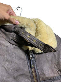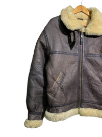🔥SHEEPSKIN LEATHER JACKETS TYPE B3 SIZE L MADE IN URUGUAY 🇺🇾 CONDITIONS USED COLOUR BROWN CODE: YELLOW RACK