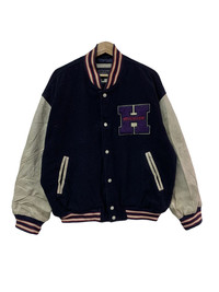 🔥VTG VARSITY JACKETS HOTSCOOP WOOL AND SLEEVE LEATHER SIZE LL MADE IN JAPAN 🇯🇵 CONDITIONS USED -SLEEVES SLIGHTLY GOT SIGNS OF WEARING COLOUR NAVY