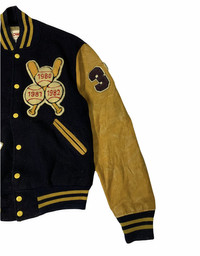 š„RARE VTG 80S HOLLOWAY USA OLD VARSITY JACKETS SIZE M MADE IN USA CONDITIONS USED COLOUR BODY NAVY(WOOL) SLEEVES YELLOW CREAM(GENUINE LEATHER) NOTED āGOODS SOLD ARE NOT REFUNDABLEā CODE: V2