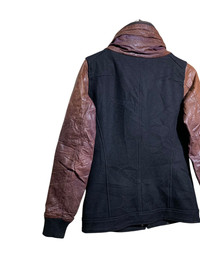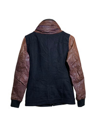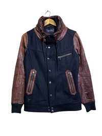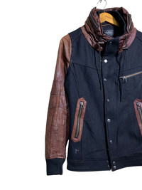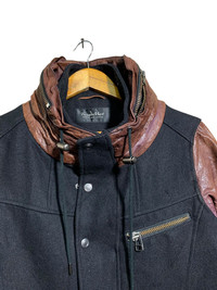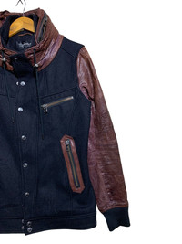 🔥T.MART JAPAN WOOL/LEATHER DETACHED HOODIE JACKETS SIZE M COLOUR BLACK AND BROWN MATERIAL REF PHOTO ATTACHED CODE: R1