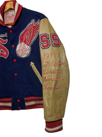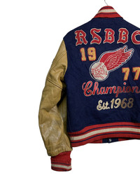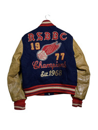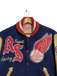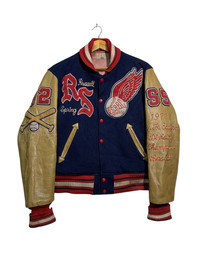🔥VTG STYLE EYES TOYO ENT. VARSITY JACKETS SIZE 40 COLOUR NAVY (BODY) MATERIAL WOOL COLOUR CREAM (SLEEVES) GENUINE LEATHER CONDITIONS GOOD USED -ONE BUTTON WAS MISSING OUT CODE: RS