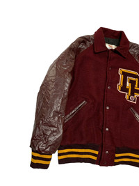 🔥VTG 80S VARSITY JACKETS WOOL/LEATHER SLEEVES SIZE L MADE IN USA 🇺🇸 CONDITIONS GENTLY USED COLOUR MAROON CODE: GK16