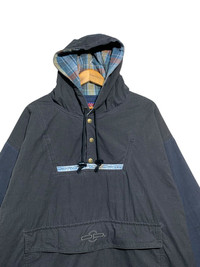 🔥VTG 90s OP ANORAK JACKETS HOODIE SIZE L (OVERSIZED) COLOUR BLACK AND DARK BLUE CONDITIONS GOOD USED CODE: GK57