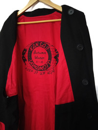 VTG AW 82-83 KANSAI YAMAMOTO DOUBLE BREAST LONG JACKET COLOUR : BLACK MADE IN JAPAN SIZE L MANUAL MEASUREMENT ARMPIT 24 INCHES LENGHT 35 INCHES CONDITION : GENTLY USED