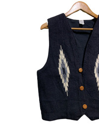 🔥VTG MOLINA NATIVE CHIMAYO VEST SIZE M MADE IN MEXICO CONDITIONS GENTLY USED COLOUR BLACK CODE: BLUE 3
