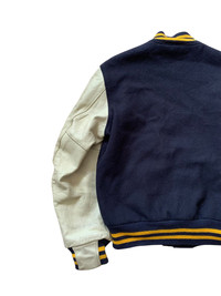 🔥VTG GOLDEN BEAR WOOL/LEATHER LETTERMAN VARSITY JACKET SIZE M MADE IN USA COLOUR NAVY + WHITE CONDITIONS GENTLY USED RS