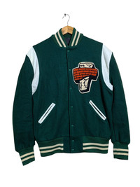 🔥VTV SKOOKUM WOOL/LEATHER VARSITY JACKETS SIZE M MADE IN USA COLOUR GREEN CONDITIONS GENTLY USED CODE: RS
