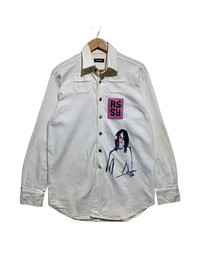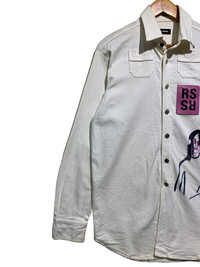 🔥RARE RAF SIMONS A/W 15 PATCHERS LEATHER GUITAR BOY ART BUTTON UP DENIM SHIRTS SIZE XS OVERSIZED MADE IN ITALY 🇮🇹 CONDITIONS GENTLY USED COLOUR WHITE CODE: GREEN 5