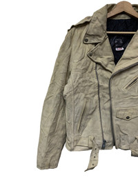 🔥PRIME PARTS JUST BRASS DOUBLE COLLAR BIKERS LEATHER JACKET SIZE 40 MADE IN USA 🇺🇸 CONDITIONS USED COLOUR WHITE CREAM CODE: RAILING