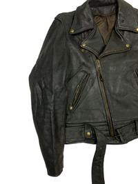 🔥RARE VTG BIKERS LEATHER JACKETS DOUBLE COLLAR SIZE M MADE IN USA COLOUR BLACK CONDITIONS USED NOTED : BUCKLE BELT WAS DAMAGE