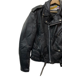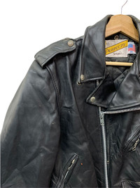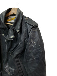 🔥SCHOTT LEATHER JACKETS DOUBLE COLLAR BIKERS SIZE 38 CONDITIONS VERY WORN -LEATHER GOT FEW DEFECTS AT THE BACK BUT NOT TEARS -BELT BUCKLE WAS MISSING OUT MADE IN USA 🇺🇸 COLOUR BLACK