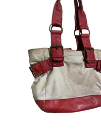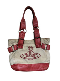 🔥V.WESTWOOD SHOULDER BAG LEATHER AND CANVAS MATERIAL SIZE H =9 INCHES X W=12 INCHES =D 4 INCHES STRAPS DROP =10 INCHES MADE IN ITALY 🇮🇹 COLOUR RED( LEATHER) WHITE(CANVAS)