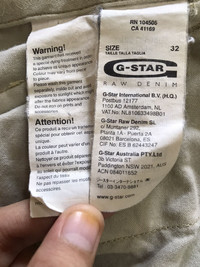 #93 PLEASE ASK ANY QUESTION BEFORE BUYING!!! THIS IS USED CLOTHING!!! PLEASE DON’T EXPECTED IT TO BE LIKE NEW OR IN PRISTINE CONDITION!!! BRAND : G-Star Raw Denim SIZE ON TAG : 32 MATERIAL : 60% Cotton 40% Ramie MEASUREMENT : 🚠 - Waist : 37 INCH - Length : 22.38 INCH - Inseam : 11.63 INCH - Leg Opening : 12.25 INCH - Front Rise : 12 INCH -Thigh : 13 INCH CONDITION : Has SMALL STAIN!!! NO HOLE!!! An item that has been used or worn previously GREAT VINTAGE CONDITION (USED CLOTHING) **WE ARE USING MALAYSIA INTERNATIONAL REGISTER. PLEASE LEAVE YOUR PHONE NUMBER ON THE NOTE WHILE MAKE A PURCHASE** THANK YOU SO MUCH FOR WATCHING MY ITEM & HAPPY SHOPPING