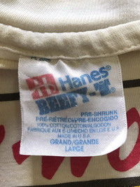 PLEASE ASK ANY QUESTION BEFORE BUYING!!! THIS IS USED CLOTHING!!! PLEASE DON’T EXPECTED IT TO BE LIKE NEW OR IN PRISTINE CONDITION!!! BRAND : Hanes SIZE ON TAG : L MATERIAL : 100% Cotton Preshrunk MEASUREMENT : 🚠 - Width (armpit to armpit) : 21.75 INCH - Length (shoulder to end of garment) : 26.25 INCH CONDITION : Has SMALL STAIN!!! NO HOLE!!! An item that has been used or worn previously GREAT VINTAGE CONDITION (USED CLOTHING) **WE ARE USING MALAYSIA INTERNATIONAL REGISTER. PLEASE LEAVE YOUR PHONE NUMBER ON THE NOTE WHILE MAKE A PURCHASE** THANK YOU SO MUCH FOR WATCHING MY ITEM & HAPPY SHOPPING