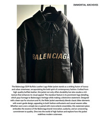 BALENCIAGA SS19 BUFFALO LEATHER LOGO RIDER JACKET The Balenciaga SS19 Buffalo Leather Logo Rider Jacket stands as a striking fusion of luxury and urban streetwear, encapsulating the bold spirit of contemporary fashion. Crafted from high-quality buffalo leather, this jacket not only offers durability but also exudes a rich texture that enhances its visual appeal. The standout feature is its prominent logo detailing, which pays homage to Balenciaga's heritage while making a distinctive statement. Designed with a keen eye for structure and fit, the Rider Jacket seamlessly blends classic biker elements with avant-garde design, appealing to both fashion enthusiasts and casual wearers alike. Whether worn over a simple tee or paired with more eclectic ensembles, this statement piece embodies the essence of the Balenciaga brand: innovation, audacity, and an unwavering commitment to quality. Dive into the world of high fashion and explore how this jacket redefines modern outerwear. ___________________________________ •Years: 2019 •Size: 48 - Chest: 56cm - Length: 67cm - Shoulders: 52cm - Sleeve Length: 68cm •Flawless ___________________________________ •OPEN: 10:30-8PM •ADDRESS: 451/37 Hai Ba Trung St, WARD 8 DISTRICT 3 - HO CHI MINH CITY •SHIPPING WORLDWIDE IN 3 DAYS •This product is available in both physical stores and other e-commerce platform. Please understand if it is sold out. •If there is color, the color may differ from the actual product depending on the color reproduction of your monitor If you have any question. Please messages to inquiry for more informations. We're appreciate for your presence. Thank you & love you all (=´∀`) I wish you peace beyond all understanding ! -Peace of "I"-