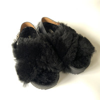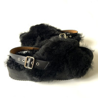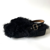 DRIES VAN NOTEN BLACK FUR PLATFORM SANDALS