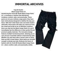 Introducing the VUJA DÉ Studio Black Cargo Pants 2.0 - a revolution in fashion that effortlessly combines comfort, style, and practicality. These pants are not your ordinary cargo pants; they have been meticulously designed to redefine the way you dress. With their sleek black color and sleek modern silhouette, these pants will make you stand out from the crowd and exude an air of effortless coolness. Once you slip into the Black Cargo Pants 2.0, you'll immediately feel the difference in their perfect fit and premium quality materials. The innovative design features multiple functional pockets, allowing you to carry all your essentials without compromising style. Whether you pair them with a casual t-shirt or dress them up with a smart blazer, these pants are versatile enough to elevate any look. Embrace the future of fashion with the VUJA DÉ Studio Black Cargo Pants 2.0 - where comfort, style, and practicality collide. ___________________________________ •Type: Rare •Years: 2019 •Size: M •Condition: 9/10 Left pocket was repaired by sewing •Materials: Cotton 95%, Polyurethans 5% ___________________________________ •SHIPPING WITHIN 3 DAYS TO ALL THE WORLD BY UPS If you have any question. Please messages to inquiry for more informations. I'm very appreciate for your presence. Thank you & love you all (=´∀`) I wish you peace beyond all understanding ! -Peace of "I"-