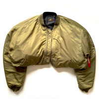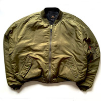 VETEMENTS X ALPHA INDUSTRIES REVERSIBLE BOMBER ETE 2017 The VETEMENTS X Alpha Industries Reversible Bomber from Summer 2017 is a standout piece for its versatility and design. This bomber can be worn on either side, offering two distinct looks, and features a unique waist zip that allows the wearer to adjust its fit, creating a cropped silhouette. Its innovative design caught attention, leading to a reel about it and its eventual appearance at Immortal Archives. ___________________________________ Season: 2017 Colour: Olive/Black Condition: Like New Size: S ___________________________________ If you have any question please direct messages to inquiry for more informations. I'm really appreciate for your appearance. Thank You & Love You All ! Wish you peace beyond all understanding ! -Peace of "I"-
