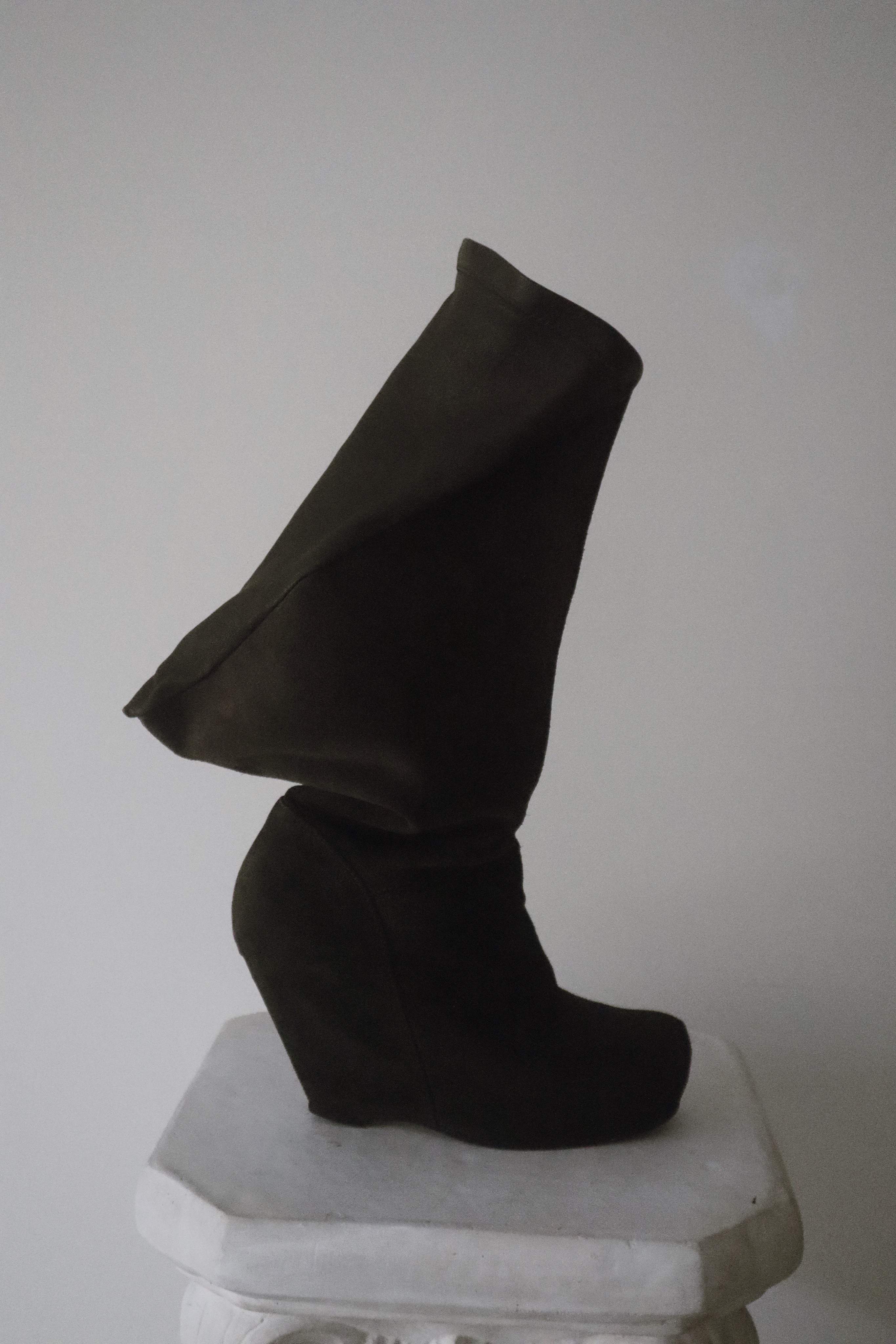 RUNWAY ARCHIVE BOOTS FROM 2009 COLLECTION WOMENS SIZE 37 GENUINE LEATHER SOLES WERE RESOLED LOVELY GRADIENT DARK GREY COLOURING