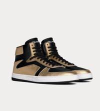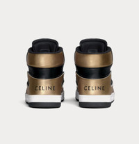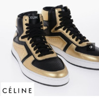 Celine - CT-01 "Z" Gold, Black High Top Sneakers The Celine "Z" Trainer CT-01 Gold / Black High Top Sneakers with Thin perforations on the upper, Side trimmings with graphic lines, Celine signature at the back and on the tongue of the sneaker "Ct-01" nomenclature is embossed on the side of the sneaker. Cotton laces. NO BOX, ONLY DUST BAG NO TRADES All is 100% authentic. No returns, exchanges or refunds. SHIP OUTSIDE USA THE BUYER PAID FOR THE SHIPPING.