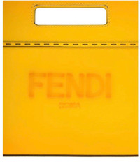 FENDI MAN'S YELLOW LEATHER MINI SHOPPER BAG WITH LOGO Shopper Yellow Leather Front gradient effect logo Two top handles Removable shoulder strap Single internal compartment Zip closure Palladium-colored hardware Dimensions: 24x19x3 cm Shoulder strap length: 50 cm Made in: Italy Composition: 100% CALF NO TRADES All is 100% authentic. No returns, exchanges or refunds. SHIP OUTSIDE USA THE THE BUYER PAID FOR THE SHIPPING.
