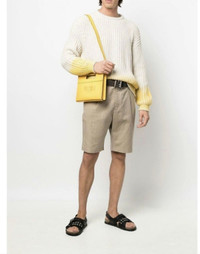 FENDI MAN'S YELLOW LEATHER MINI SHOPPER BAG WITH LOGO