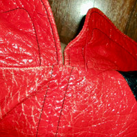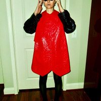 Balenciaga by Nicholas Ghesquiere SS2011 Runway look 1 red coat US 8 Lining is 100% silk and outer is 85% cotton 15% polyethylene. Rare archival coat from the iconic SS11 collection under Nicolas Ghesquière. This piece debuted on the runway in a houndstooth print — this version features a striking solid red body with glossy black contrast sleeves in a sculptural silhouette. The coated textile has a cracked, almost leather-like surface finish, giving it a futuristic, industrial feel while remaining lightweight and wearable. Condition: Fair vintage condition – notable cracking and surface wear throughout the coated textile, particularly around the collar and seams (see detail photos). Lining is in good condition. Priced accordingly.