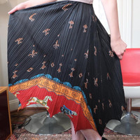 RARE Issey Miyake Pleats Please Carousel Merry-Go-Round horses print handkerchief pleated skirt. Absolutely stunning piece. super rare find. would fit a small pleated, carousel print, horses motif, handkerchief hem, Miyake design, vibrant pattern, tiered skirt, flowy, artistic, statement piece