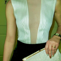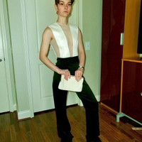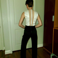 Galvan London Prefall 2017 Tuxedo Jumpsuit Size 2 | Excellent Condition | Celebrity-Worn Sleek, sculptural, and red carpet-approved — this Galvan London tuxedo jumpsuit from the Prefall 2017 collection is a true statement piece. Worn by Shay Mitchell on the red carpet in 2017, this iconic look features: • A sculpted, sleeveless bodice with tonal textured paneling • Sheer mesh insets that create the illusion of a deep plunge front & back • High-rise black tailored trousers with a wide leg for a clean, elongated silhouette • Hidden zip closure at back • Fully lined; premium construction 📸 As seen on Shay Mitchell and modeled in the official lookbook. A rare, standout piece for collectors or fashion-forward minimalists. 📏 Size: US 2 (IT 38) 🔍 Condition: Excellent — no known flaws, professionally stored and ready to wear. 🖤 Original retail: ~$1,300