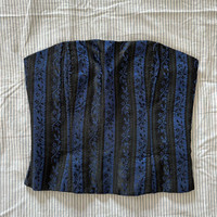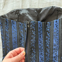 Vintage Jessica McClintock blue & black floral corset top (REPOP) Marked as size 4 but runs small; best fits xs / 0 or 2 Features: Super y2k style vintage corset with an antiqued floral satin and metallic print. Built in bodice support. Zip back closure. OFFERS WELCOMED! Approximate Flat Lay Measurements *14" pit to pit *13" mid bodice *11" length Goth fairycore fairy romantic grunge regency y2k 1990 boudoir costume cosplay #90s #goth #corset