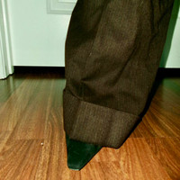 mid rise wool brown Sportmax work pants / dress pants / trousers for work or school folded at the bottom with wide leg cut. inseam a little long, 32ish inches. size S-M but no size tag fits like a 4 wool blend, tailored, high-waisted, minimalist, professional, office wear, neutral brown, structured, versatile