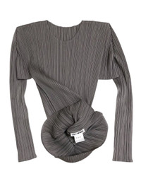 Issey Miyake Pleats Long Sleeve Shirt Used, Good Condition Size : On tag M Size recomend : M/L can be used, elastic material ✅ feel free to message me anytime “Please, before make a purchase see all the photo details, check the measurement and ask about everything you want”.