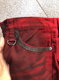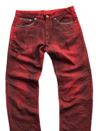 Semantic Design Distressed Red Bleach Flare Pant Used, Good Condition Size : On tag L (33/34) can be used, check measurement ✅ feel free to message me anytime “Please, before make a purchase see all the photo details, check the measurement and ask about everything you want”.