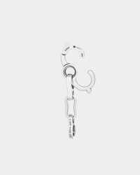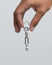 This sturdy keychain from GOOD ART HLYWD comprises a small “Sister” clasp and a short bottle-link chain, ideal for attaching to a belt loop and split ring. Understated in design yet sturdy and practical, the clasp features a simple scissor mechanism — meaning there are no springs or catches to wear out — with each component of the clasp and chain handmade in .925 sterling silver. Finished with subtle GOOD ART branding, the silver is dipped in sulphuric acid before being hand-burnished, creating an understated blackened contrast against the impeccably polished highlights. Made by GOOD ART HLYWD Handmade jewellery from the USA, designed by Josh Warner and crafted at The Foundry in Los Angeles. Product Details - .925 Sterling Silver - Size B - Clasp external diameter: 24mm - Clasp internal diameter: 13mm - Chain Length: 65mm