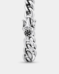 It's been almost 25 years since the concept for this bracelet and clasp was created. The first one took a year to make - it was the tenth bracelet Josh from Good Art had made and by all measure the best. Gradually, the Model 10 would become a marquee design of GOOD ART. Not just a staple of the brand, but a standard of exceptional quality in design and construction. Made in small quantities, entirely by hand in our Los Angeles Foundry, production of the Model 10 ceased for three years while Josh figured out how to out-create the hijackers and counterfeiters of his work. Made by GOOD ART HLYWD Handmade jewellery from the USA, designed by Josh Warner and crafted at The Foundry in Los Angeles. BS 10b - .925 Sterling Silver - Size B - Link width: 16.5mm - Clasp length: 27mm