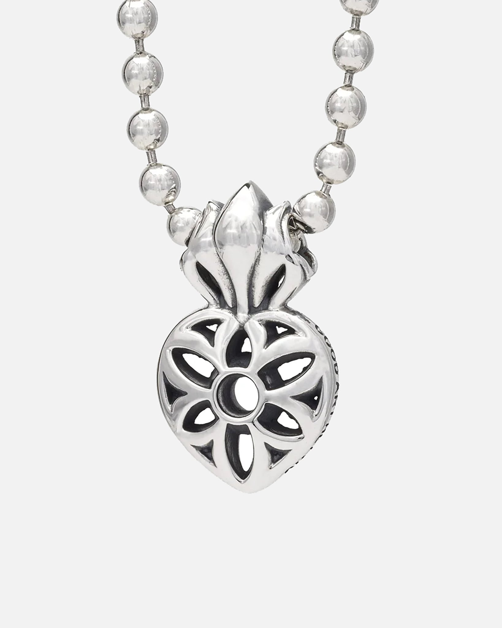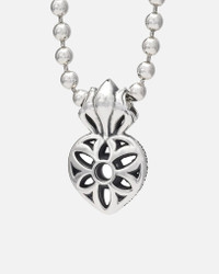 Solid cast .925 sterling silver double-sided pendant with a hidden fixed bail and GOOD ART HLYWD hallmark. Each GOOD ART HLYWD piece is dipped in sulphuric acid before they are hand-burnished, creating an understated blackened contrast against the impeccably polished highlights. Made by GOOD ART HLYWD Handmade jewellery from the USA, designed by Josh Warner and crafted at The Foundry in Los Angeles. GOOD ART HLYWD Small Sacred Rosette Pendant - Sterling Silver - .925 Sterling Silver - Height: 32.3mm - Width: 19.5mm