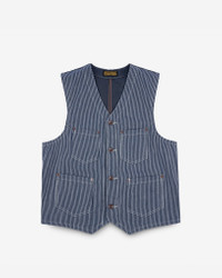10.5OZ NARROW STRIPE HICKORY WORK VEST - INDIGO