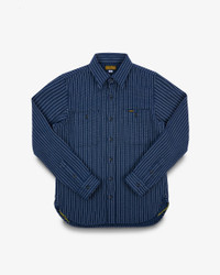 12OZ ULTRA HEAVY FLANNEL CHALK STRIPE WORK SHIRT - NAVY