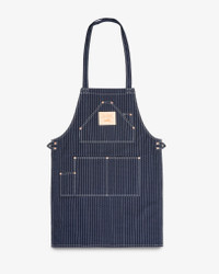 Made from 12oz Japanese Wabash, our full-length bib apron offers hard-wearing protection, practical features and classic workwear styling. Versatile pockets include a kangaroo-style chest pouch with dual pen slots and two large waist pockets, finished with heavy-duty straps and tie loops. Constructed using the same over-engineered techniques as our heavyweight jeans, all pockets are reinforced with brass rivets and stitched with high-tensile poly/cotton thread. Made In Japan - Designed by Shinichi Haraki, handmade by WORKS INC. in Japan 12oz Japanese Wabash - A traditional workwear fabric that dates back to the 1800s - 100% cotton - Twill weave - Rope-dyed warp and weft yarns - Post-weave, the dots are bleached onto the face of the fabric - This fabric will fade with vintage character through wear and washing Cut & Features - Full-length bib apron - Contrast stitching and bar tacks - Heavy-duty straps and tie-loops - Large chest pouch with dual pen holder slots - Two large waist pockets - One small waist pocket - Brass reinforcement rivets - Poly/cotton constructional stitching - Single and double needle stitch construction - One size fits all One-Washed Wabash Shrinkage - To reduce the risk of shrinkage, we wash the completed garment in an aggressive industrial washing machine. This process removes virtually all potential shrinkage. - Negligible shrinkage expected when washed in accordance to our care guidelines Care Guidelines - We recommend washing this garment at 30°C with a low (or no) spin cycle. Hang dry, do not tumble dry