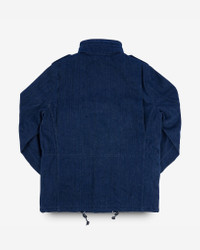 The original M65 jacket was initially designed in 1965 as a cold weather field coat for the US military - but this is no ordinary M65. Taking the classic cut - complete with four large patch pockets and a hooded collar - we’ve constructed this unique take on the M65 from natural indigo dyed, 16oz selvedge denim. Hand dyed in Tokushima, Japan, the use of natural indigo results in a denim with a richer colour compared to more commonly used synthetics. A very labour-intensive process (hence the more limited nature of natural indigo denim), the dye also takes a lot longer to start fading. However, when the yarns do eventually start to give up their indigo, the denim will develop beautiful fade patterns with lots of contrast. Finished with 8-wale corduroy lining on the collar and cuffs, leather drawstrings and an over-spec’d YKK zipper, this is a very special, extremely limited run jacket. Made In Japan - Designed by Shinichi Haraki, handmade by WORKS INC. in Japan Cut & Features - Inspired by the original 1965 US Military M65 field jacket - Waterproof Ventile lining - Two-way main zipper with snap fastening placket - Zippered collar with 100% polyester ripstop hood - Four snap fastening patch pockets - Handwarmer pockets - Internal ‘gun’ pocket - Velcro fastening throat latch - Bi-swing shoulder pleats - Drawstring at waist and hem Cut & Features - Inspired by the original 1965 US Military M65 field jacket - Waterproof Ventile lining - Two-way main zipper with snap fastening placket - Zippered collar with 100% polyester ripstop hood - Four snap fastening patch pockets - Handwarmer pockets - Internal ‘gun’ pocket - Velcro fastening throat latch - Bi-swing shoulder pleats - Drawstring at waist and hem Model Sizing Model Johnny wears Large Sanforized & One-Washed - Sanforization is a post-weave mechanical process which removes most potential shrinkage from a fabric before garment construction - To further reduce the risk of shrinkage, we wash the completed garment in an aggressive industrial washing machine. This process removes virtually all potential shrinkage. - No further shrinkage is expected when washed according to our care guidelines Stretch Details - The waist will stretch out approximately 1" with wear. All other dimensions that are put under pressure will stretch proportionally to the waist Care Guidelines - We recommend washing this garment at 30°C with a low (or no) spin cycle. Hang dry, do not tumble dry