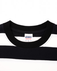 Constructed from a hefty 7.5oz cotton knit, this distinctive long-sleeved t-shirt is supremely soft, yet extremely durable. Features include chainstitched shoulder seams for increased strength, a ribbed crew neck and bold black and white stripes throughout. Made In Japan - Designed by Shinichi Haraki, handmade by WORKS INC. in Japan 7.5oz Japanese Loopwheel Cloth - 100% cotton - Knitted on vintage loopwheel machines in Wakayama, Japan - Reactive-dyed warp and weft yarns - Fade-resistant finish to ensure a steadfast colour Crew Neck Border Tee - Features & Construction - Long sleeved t-shirt - Ribbed crew neck - Chainstitched, reinforced shoulder seams One-Washed - Post construction, we wash the completed garment in an aggressive industrial washing machine. This process removes virtually all potential shrinkage. - No further shrinkage is expected when washed according to our care guidelines Care Guidelines - We recommend washing this garment at 30°C with a low (or no) spin cycle. Hang dry, do not tumble dry