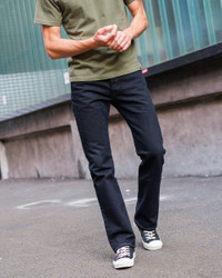 The 666 cut, our "Devil's Fit" slim straight jean that has a low/medium rise. Our 14oz denim is made with a double twisted weft yarn (the same construction technique as our 21oz selvedge denim) and has been overdyed black that will fade with time and wear. At 14oz, this is the "least heavy" Japanese jean denim. Made In Japan - Designed by Shinichi Haraki, handmade by WORKS INC. in Japan 666 Slim Straight Cut - Traditional straight cut styling with an all-around slimmer profile - Medium/low rise - Straight leg profile with a slight taper from knee to hem - Classic 5-pocket design 14oz Japanese Selvedge Denim - Overdyed Black - 100% cotton - Woven with a double twisted weft yarn - Indigo rope-dyed warp / white weft - Right-hand twill weave - Post-construction, this garment is overdyed using black sulphur dye - The sulphur overdyeing process oxidises any metal hardware for an aged appearance - This denim will fade with indigo-tinged hues through wear and washing Hardware & Construction - Traditional 3-button fly - Iron Heart branded tack button at waistband - Works Inc branded pocket rivets - Hidden rivets on rear pockets - Poly/cotton stitching for increased strength - Single and double needle chain stitch construction - Belt loops anchored at three points and sewn into the waistband - Heavy cotton pocket bags and lined rear pockets Selvedge ID - Sideseam, fly, and coin pocket selvedge ID Leather Patch - Lightweight vegetable-tanned steerhide - Stitched on all sides - Dyed Iron Heart graphic - Please note: Continued washing (especially at higher temperatures) may cause shrinkage and deformities Sanforized, One-Washed & Overdyed - Sanforization is a post-weave mechanical process which removes most potential shrinkage from a fabric before garment construction - To further reduce the risk of shrinkage, we wash the completed garment in an aggressive industrial washing machine. - Following this, a high-temperature overdyeing process removes any remaining potential shrinkage - This garment may fit slightly smaller than its non-overdyed counterpart. Please refer to our measurement charts carefully - No further shrinkage is expected if washed in accordance with our guidelines Stretch Details - The waist will stretch out approximately 1" with wear. All other dimensions that are put under pressure will stretch proportionally to the waist Care Guidelines - We recommend washing this garment at 30°C with a low (or no) spin cycle. Hang dry, do not tumble dry
