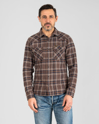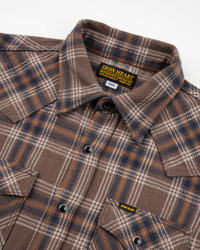 SLUBBY HEAVY FLANNEL CHECK WESTERN SHIRT - BROWN