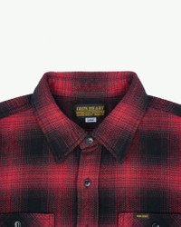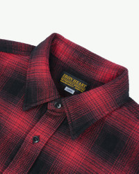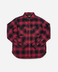 To a great extent, our ultra heavy flannel (UHF) shirts define Iron Heart: heavy, rugged, but amazingly wearable. The 12oz fabric is woven with Aspero cotton from the foothills of the Andes mountains. We double brush it on the inside and single brush it on the outside, resulting in a very soft yet substantial, thick, warm and windproof flannel. This shirt is a wardrobe staple - seen here in our work cut in red/black ombre check. Made In Japan - Designed by Shinichi Haraki, handmade by WORKS INC. in Japan 12oz Japanese Ultra Heavy Flannel - 100% aspero cotton - Single brushed face / double brushed reverse - Twill weave - Reactive-dyed warp and weft - Fade-resistant to ensure a steadfast colour Cut & Features - Work shirt - Regular fit - Button fastenings - Chest pockets with pen holder - Straight back yoke - Rounded hem with gussets and chainstitch run-off Optional Upgrades This shirt is fitted as standard with four-hole buttons. Want to customise? Upgrade with a choice of 13mm or 15mm sterling silver buttons from GOOD ART HLYWD when you add to cart Constructional Stitching - Single and double needle stitching - Poly/cotton thread for enhanced strength - Bar tack pocket reinforcements - Chainstitched side seams - Felled internal seams Model Sizing Model Courtney wears XXL One-Washed - Post construction, we wash the completed garment in an aggressive industrial washing machine. This process removes virtually all potential shrinkage. - No further shrinkage is expected when washed according to our care guidelines Care Guidelines - We recommend washing this garment at 30°C with a low (or no) spin cycle. Hang dry, do not tumble dry