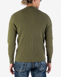 WAFFLE KNIT LONG SLEEVED THERMAL HENLEY - OLIVE