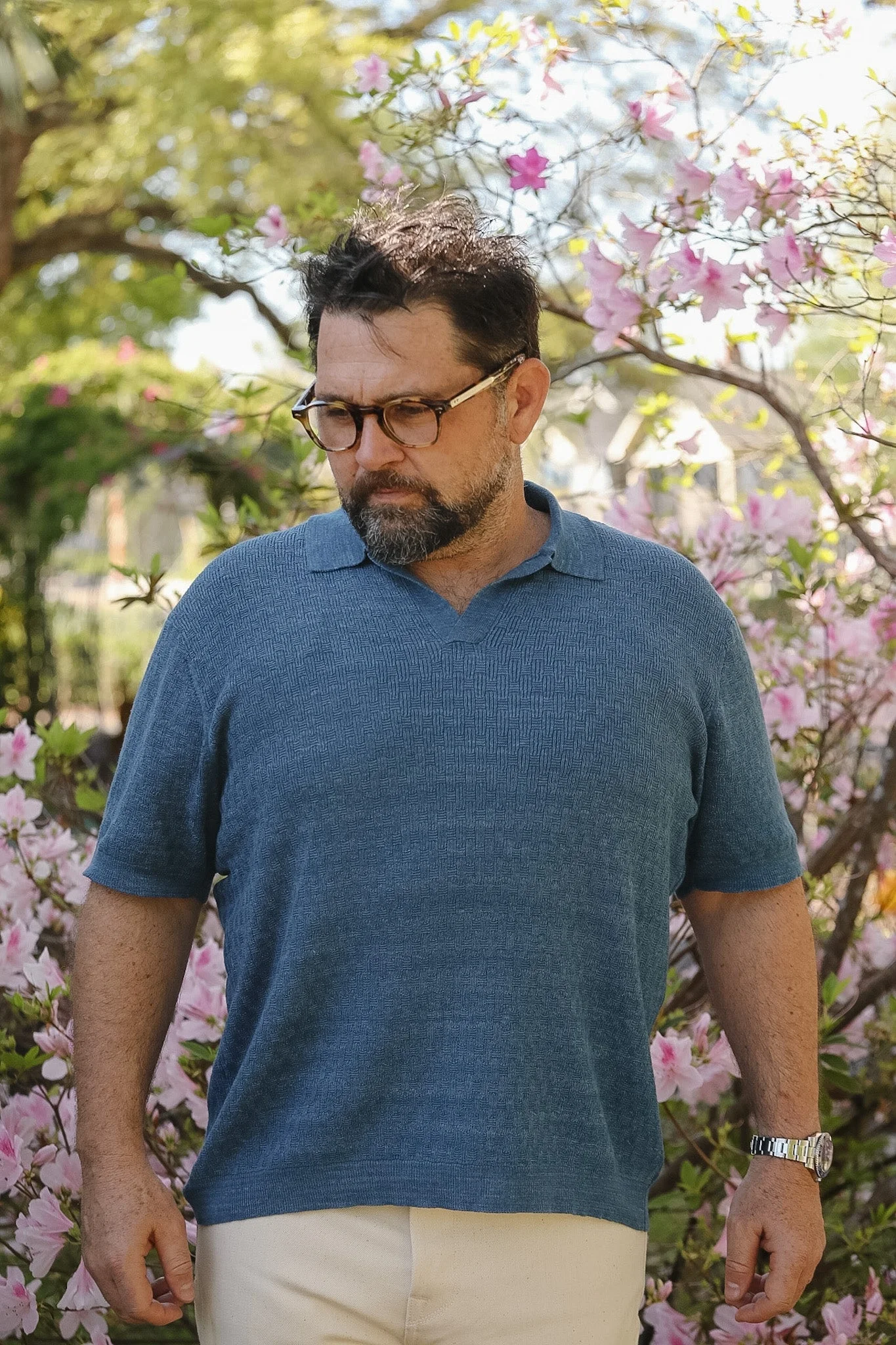 Knit Polo - Vintage Blue Boxweave