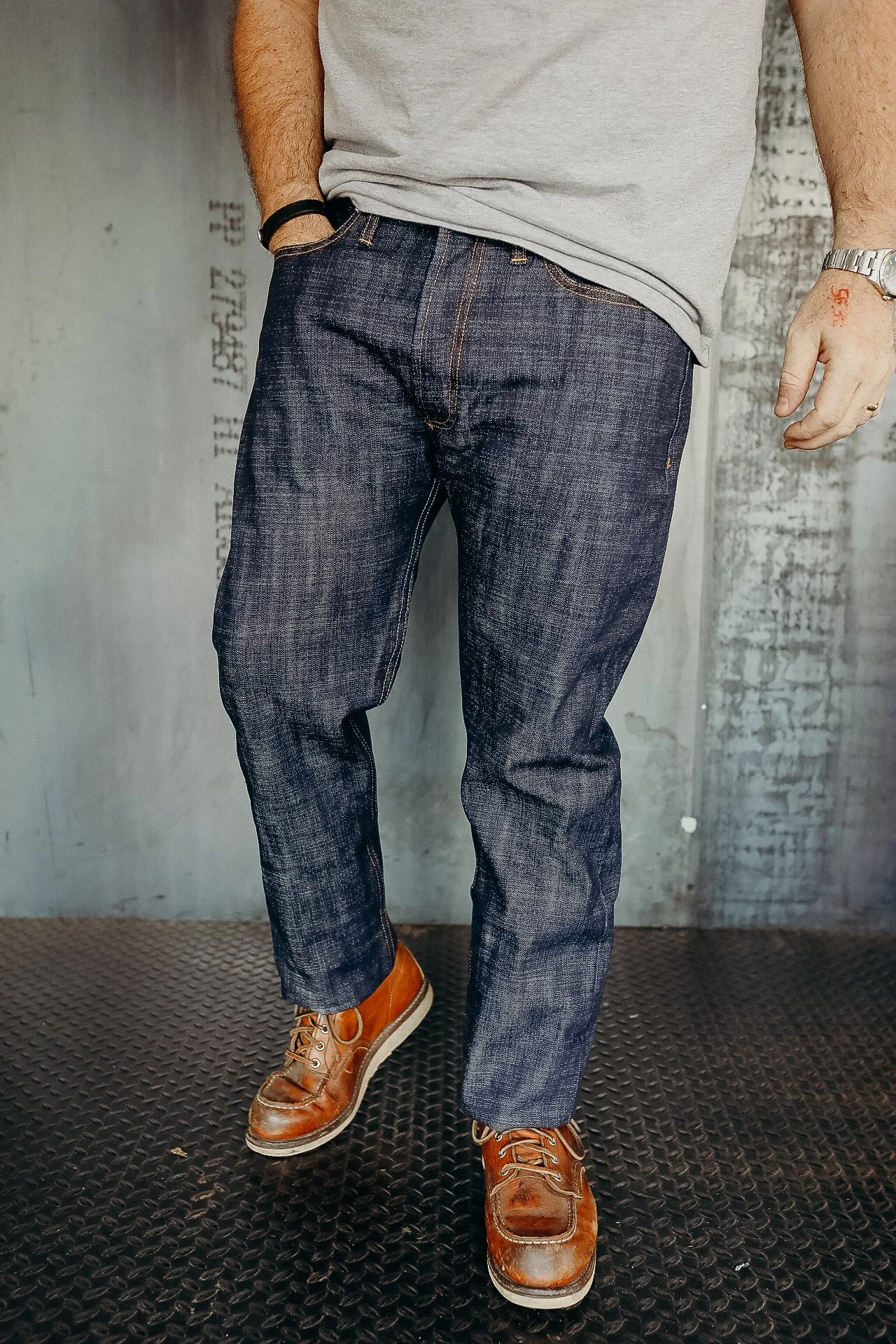 This extremely limited denim is woven on the same 100 year old Japanese mill that is also making 3sixteen's Burkina Faso denim. This 15.4 ounce 100% organic cotton denim is spun in a unique process that creates uneven twisted yarns, then dipped in natural indigo from India two times the amount used in traditional rope dyeing methods. -100% organic cotton -15.4 oz -Classic tapered fit -Natural indigo dyed -Made in the USA