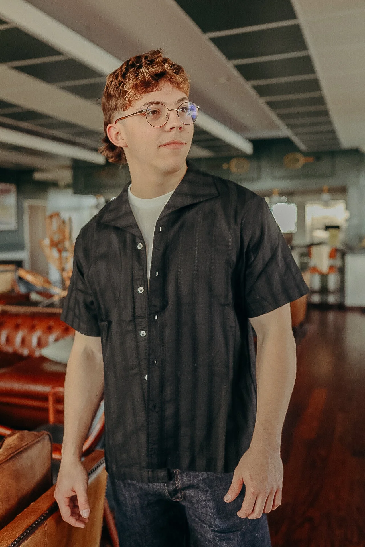This Leisure Shirt from 3sixteen takes inspiration from 1950s vacation shirts with its open-collar design. Constructed with a Japanese striped lace weave, this iteration offers a unique and visually appealing texture. The shirt is adorned with coconut buttons, adding the perfect finishing touch. - 100% Cotton woven in Japan - Pattern-matched straight back yoke - Open spread Collar - Coconut buttons - Made in India Daniel is 6'1 185lbs wearing a size Large