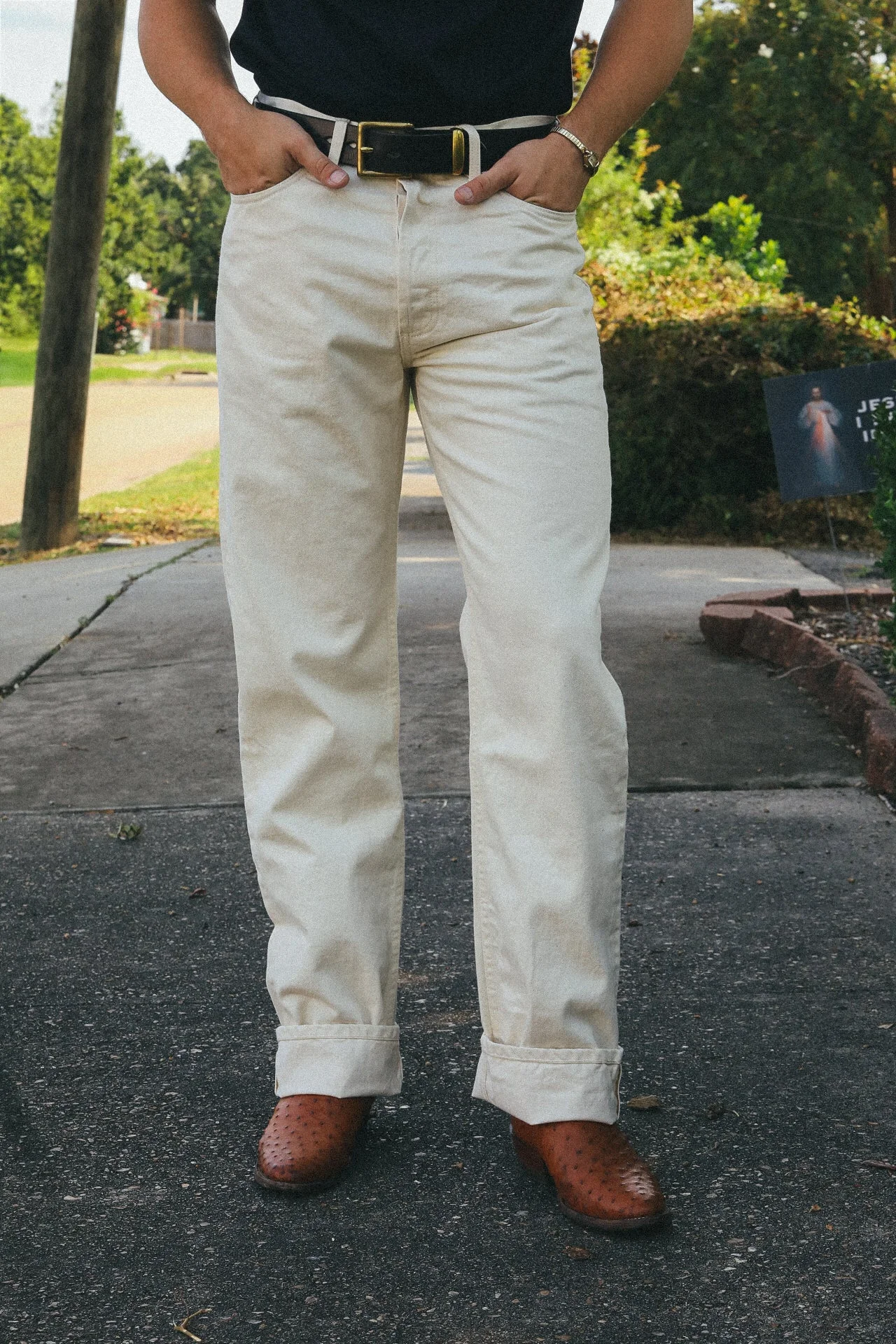 The RS-33x showcases 3sixteen’s widest cut to date, designed with a higher rise, roomier thighs, and a generous leg opening for a relaxed, easygoing silhouette. This fit is ideal worn with a clean cuff or full break, offering both comfort and versatility. Crafted from a 12oz ecru selvedge denim woven exclusively for 3sixteen by Kuroki Mills, the jeans are garment washed for a soft, broken-in feel straight out of the box. Finished with thoughtful details and made in the USA, the RS-33x is a timeless, easy-to-wear addition to any denim rotation. - 12 oz. ecru selvedge woven in Okayama, Japan - Custom gunmetal shanks and rivets - Selvedge fly and coin pocket detailing - Roughout leather patch - Made in USA Dan is 6'1 180lbs wearing a 33
