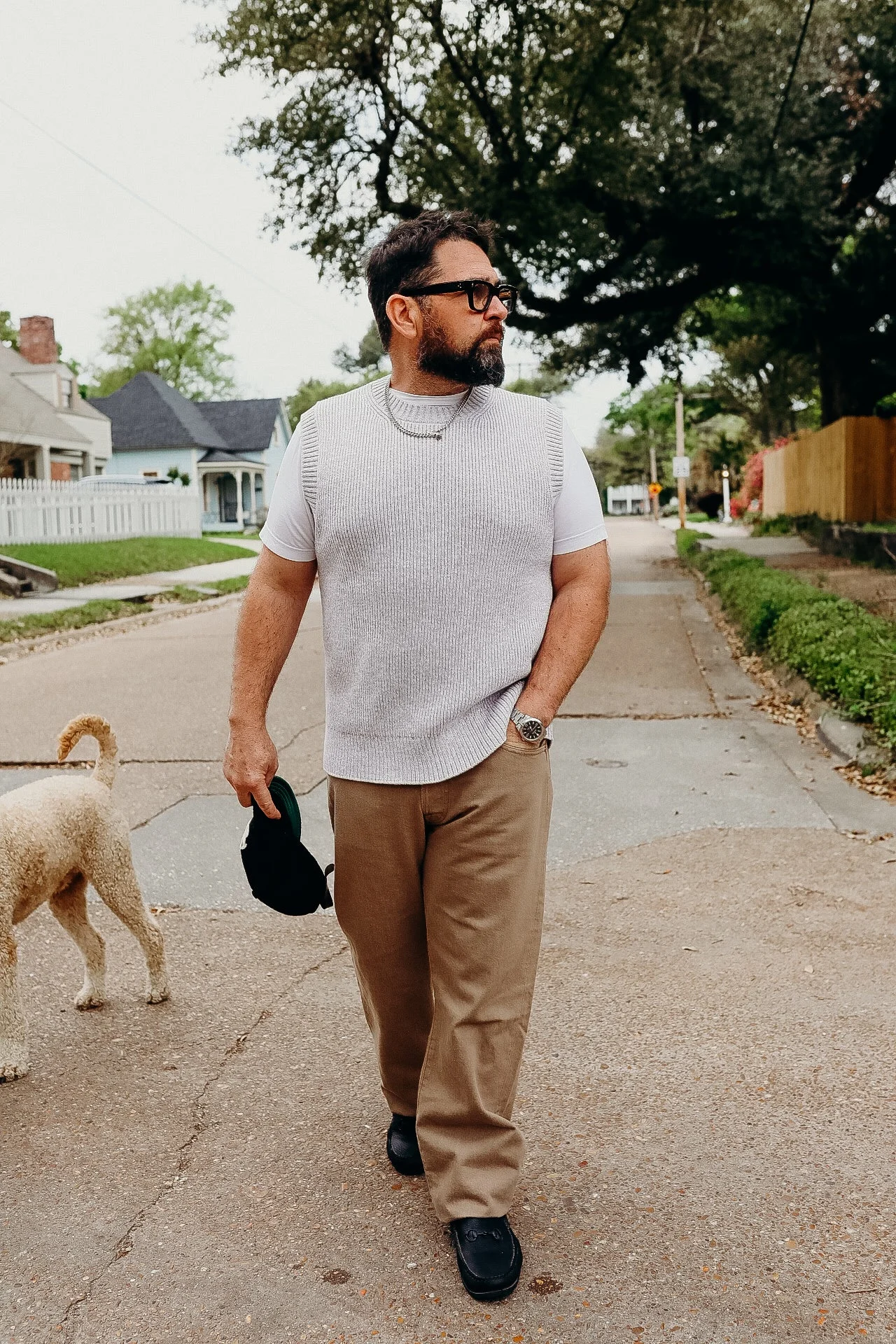 Crafted from a natural marled yarn, this Sweater Vest by 3sixteen features a chunky ribbed-knit design with a cozy collar and low armholes for a versatile and warm layering option during transitional seasons. - 100% Pima Cotton yarn - Made in Peru